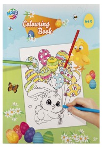 Wielkanocna kolorowanka A4, 64 strony z różnymi rysunkami do pokolorowania, przedstawiającymi motywy wielkanocne,